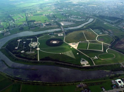 노구치는 그곳을 덮어 높이 52m의 인공 언덕으로 재탄생시켰습니다.