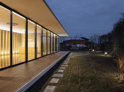 삼각형 철골 래티스 구조에 로이글라스 이중 스킨을 적용해 낮에는 빛을 투과시키고 밤에는 내부가 은은히 빛나는 공간으로 변합니다.