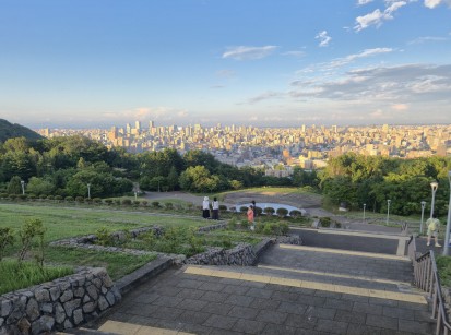 정상에 오르면 삿포로의 격자형 도시 구조와 주변 자연이 한눈에 들어오는데